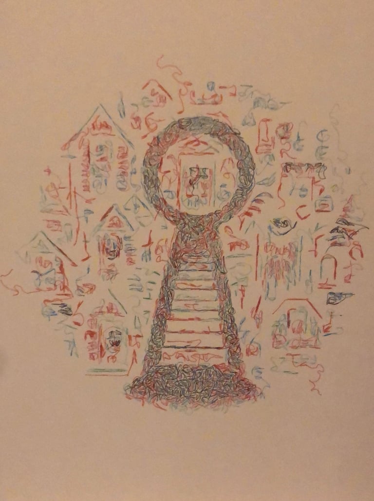 "Le mot "Judas" m'a inspiré une image déformée comme lorsqu'on regarde au travers. Les enfants qui ont participé à la création de la vitrine ont parlé de Noël et de lettres. Afin de coller à la thématique de l'exposition, je suis passé par Dall-E pour générer une image spéciale. Ensuite, j'ai fait quelques petits changements pour transformer l'image et enfin, je l'ai imprimée en plusieurs étapes avec plein de couleurs différentes." Cyril